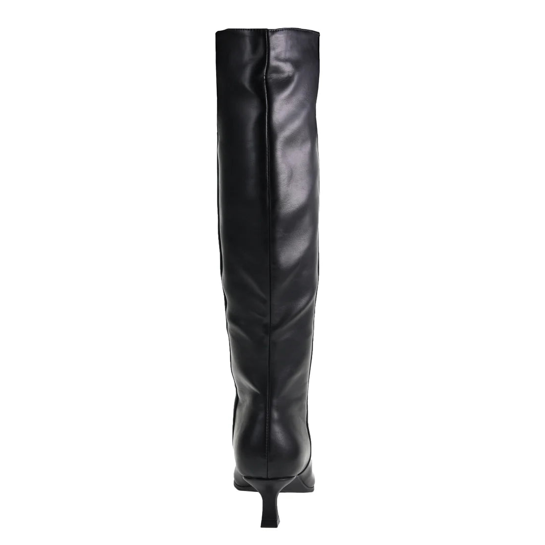 The Chinese Laundry Nolan Boot is a sleek knee-high essential that blends timeless sophistication with modern edge. Crafted in smooth black faux leather, this chic boot features a pointed toe and slim silhouette that elongates the leg, while the kitten heel adds just the right touch of lift for all-day wearability. Perfect for pairing with dresses, skirts, or denim, the Nolan is a versatile statement piece that takes you seamlessly from day to night.