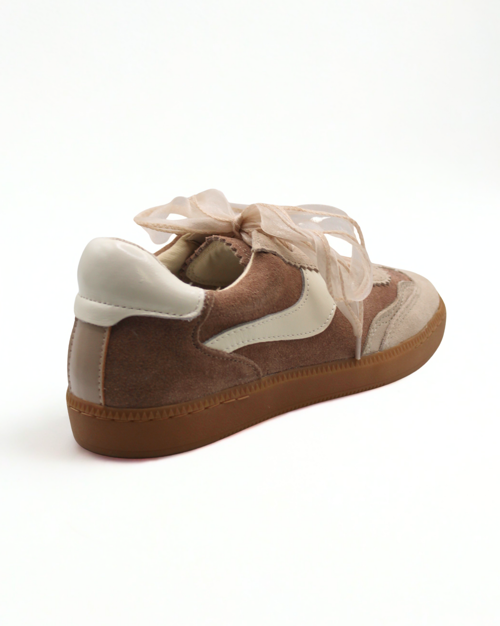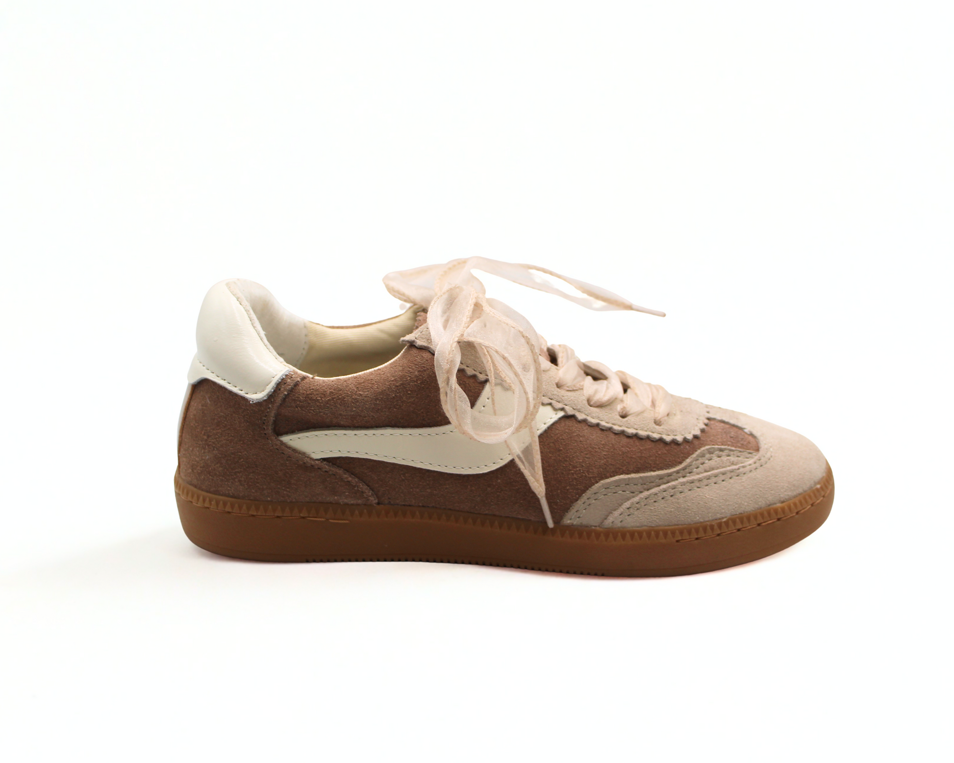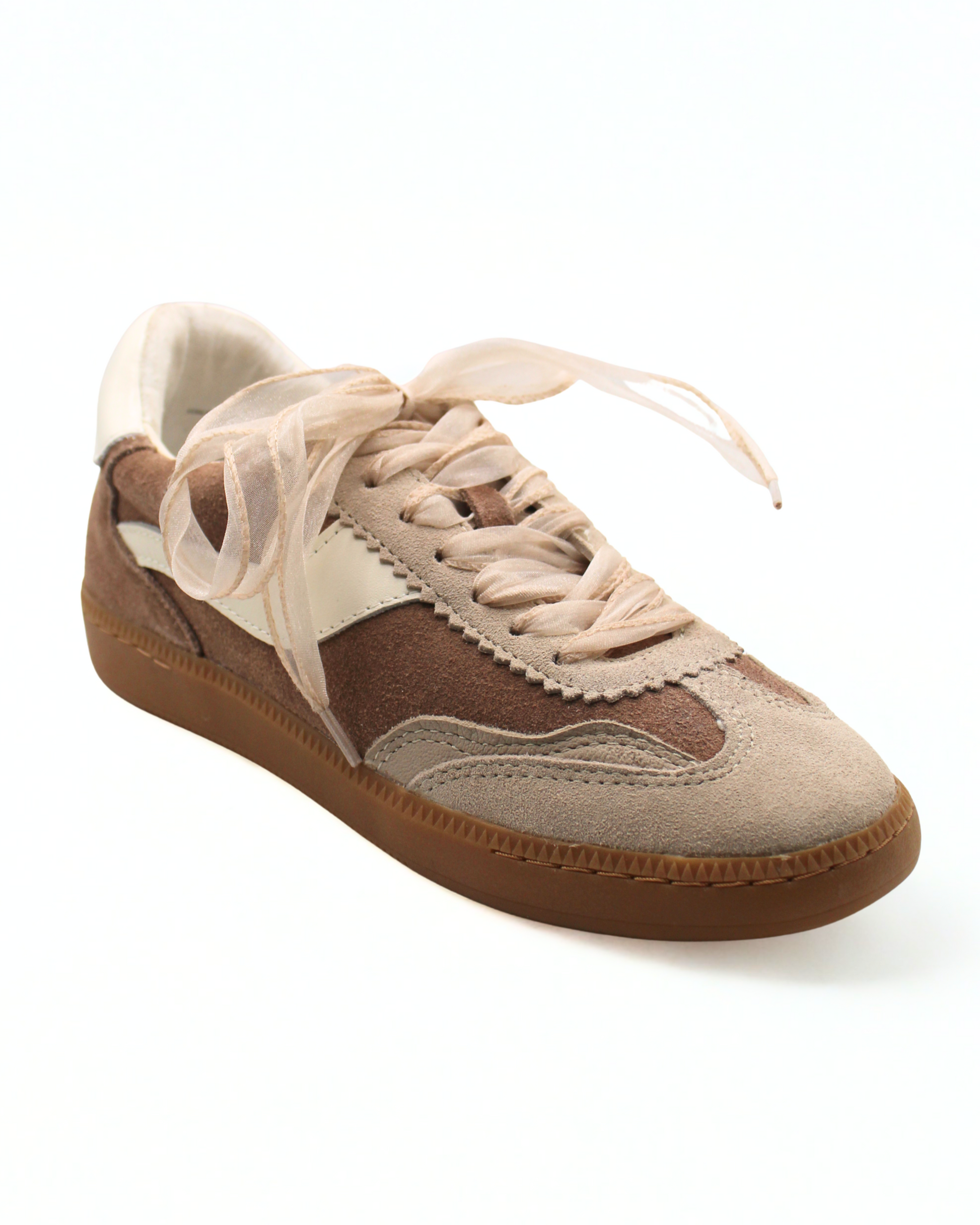 The Dolce Vita Notice is a low-profile, lace-up sneaker with a timeless look and nonstop wearability. Built with a leather/suede upper, cotton–linen blend lining, and a durable rubber sole, it features a round toe, subtle 1" lift, and contrast overlays with pinked edging.