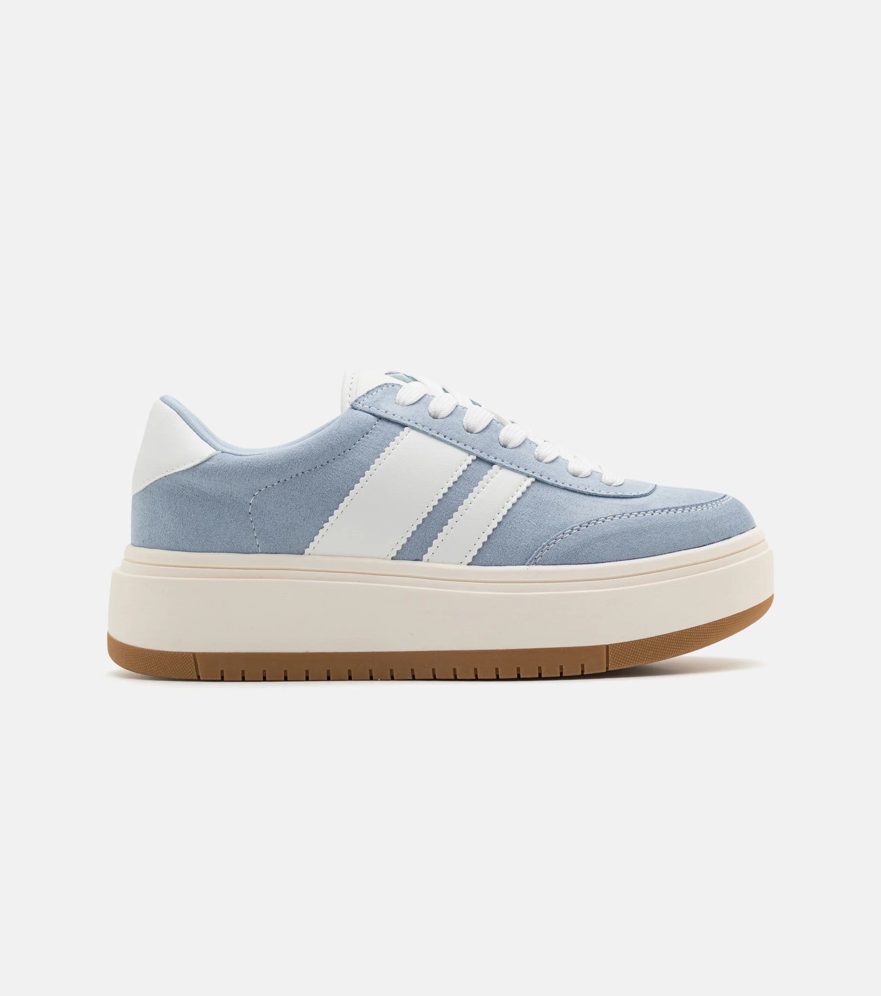 Elevate your everyday style with the Madden Girl Navida Sneaker, a playful court-inspired design featuring bold mismatched stripes, contrasting heel accents, and a 1¾" platform sole for just the right lift. Crafted with a synthetic upper and soft jersey fabric lining for comfort, this fashion-forward sneaker combines sporty edge with standout appeal, making it the perfect go-to for pairing with everything from jeans to skirts.