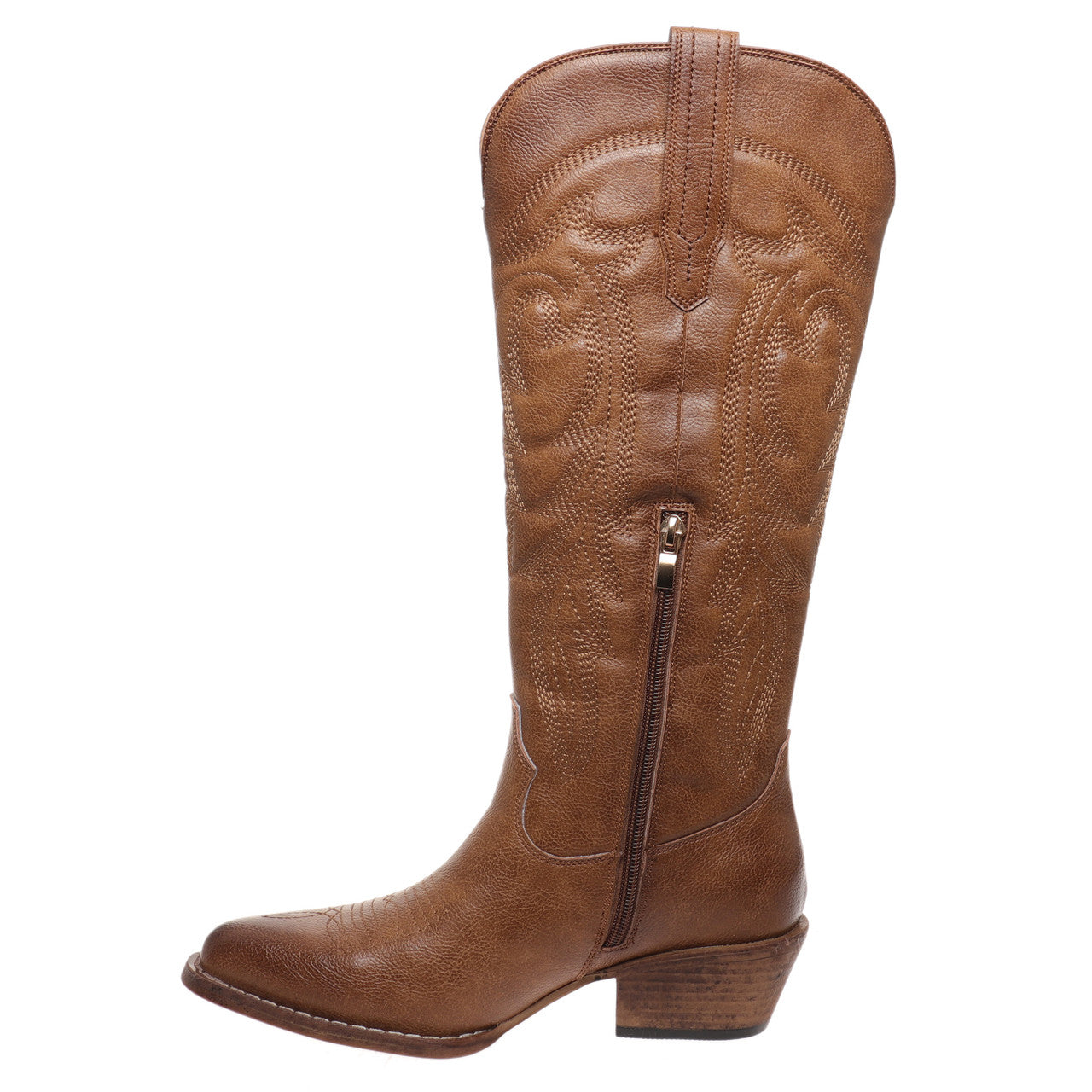 The Pierre Dumas Dixie 3 Boot brings a modern twist to Western-inspired style with a rich tan finish, detailed stitching, and a classic pointed toe. Complete with a stacked block heel, side zipper for easy wear, and a durable outsole, this tall boot delivers timeless cowgirl charm with everyday comfort.