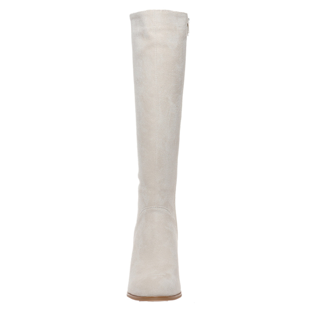 Polished and endlessly versatile, the Wake-3 brings a sleek finish to every outfit. Crafted in soft nude faux suede, this knee-high boot features a clean, minimalist shaft, an easy inside zipper, and a stacked block heel that adds flattering height while staying walkable. A smooth almond toe and neutral hue make it the perfect pair for sweater dresses, denim, and everything in between.