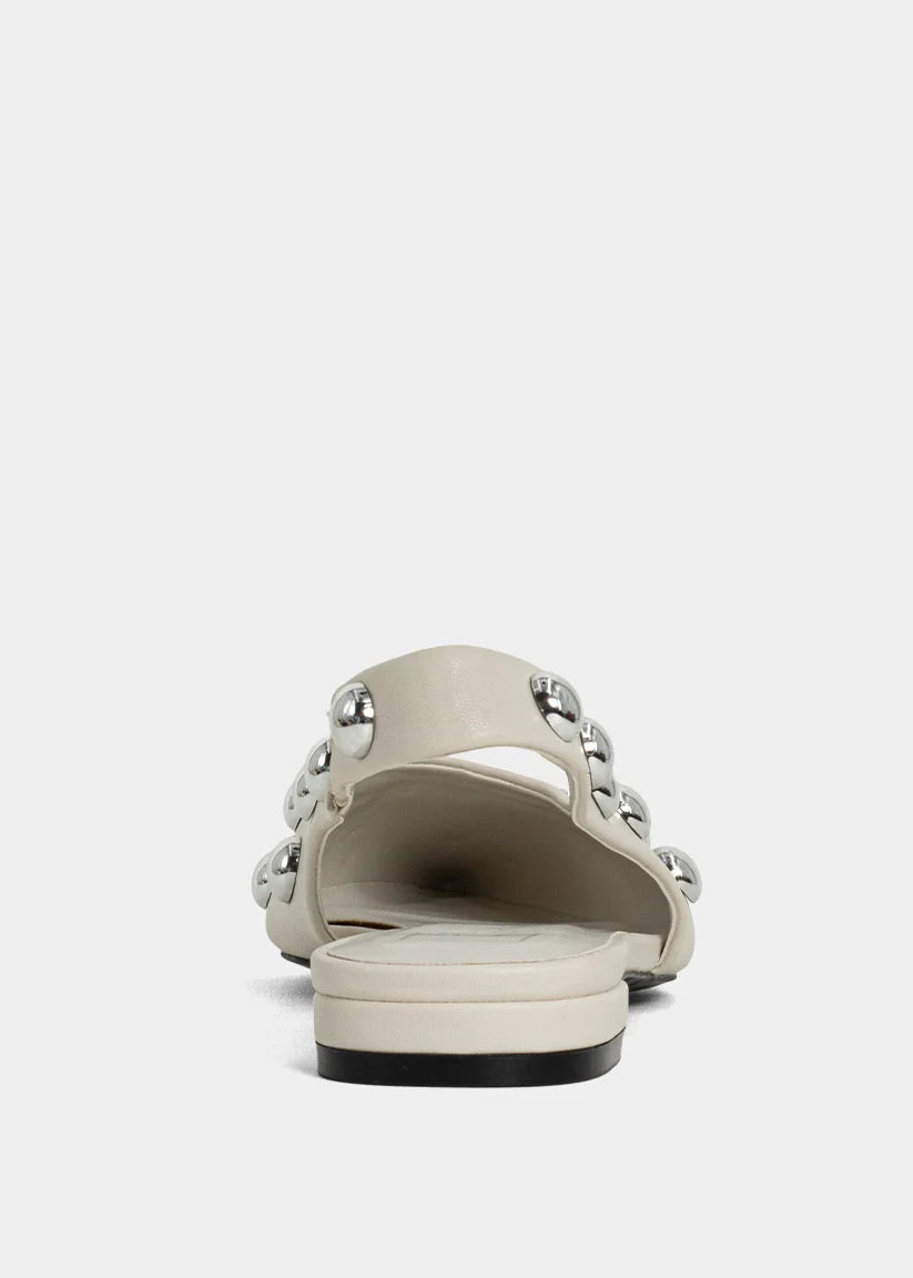 Minimalist in color, bold in detail. ARIZONA in Bone is a refined flat with just the right amount of attitude, thanks to its polished silver studs and pointed silhouette. The slingback design makes it an easy everyday pick, while the creamy neutral tone adds effortless elegance to any look.