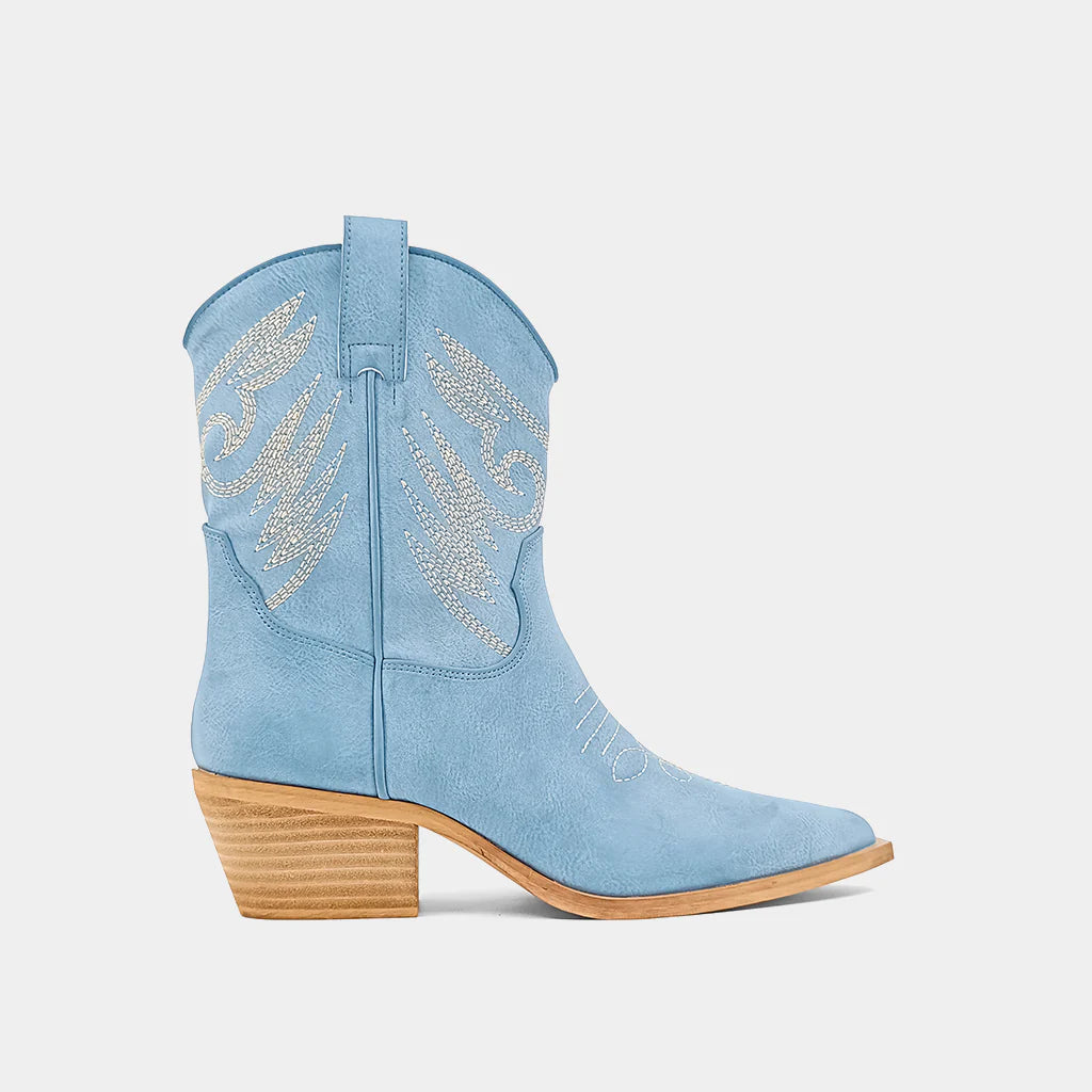 Turn heads in the ZAHARA cowboy boots — a bold, Western-inspired style crafted from ultra-soft faux leather with a luxe, buttery feel. Designed with a classic stacked heel and sleek silhouette, these boots add just the right amount of edge to any outfit. Versatile enough for every season, the ZAHARA pairs effortlessly with both laid-back looks and dressed-up ensembles. A true standout for any wardrobe.