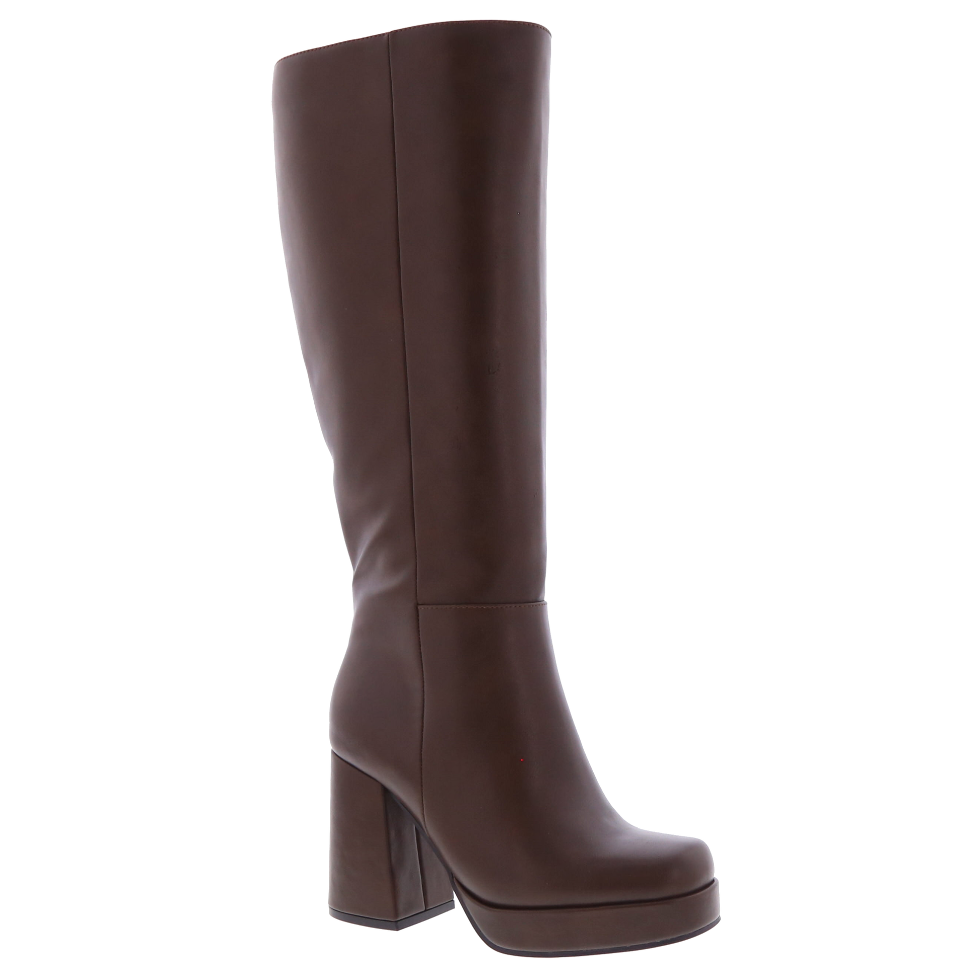Bring bold style and everyday comfort to your wardrobe with the Top Moda East‑27 Mid-Calf Boot in classic brown. Designed with a flattering mid-calf silhouette and crafted from rich, smooth vegan PU leather, this versatile boot features a sleek almond-toe shape, chunky 2.5–3" block heel, and discreet side zip for easy wear. The cushioned insole provides all-day support, making it the perfect pick for everything from casual errands to dressed-up evenings out.